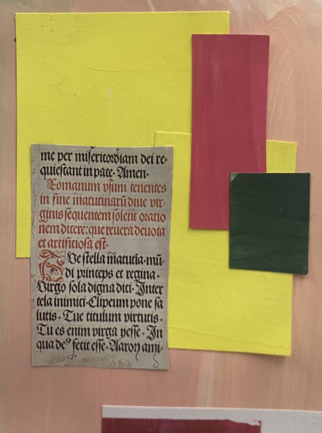 I started to just experiment with line and pattern placement. I also took a lot of pictures from a renaissance magazine and I feel that the faces add a comical feel to the pieces. I still stayed to smaller scale collages, which I preferred to when working with larger scale. I really like how the pieces turned out and the contrasting colours. I would like to still work in small scale, but have more layers and also I’m curious as how the current pieces would look if turned negative. I’ve been looking at artist Minna Gilligan and would like to look more into her work.